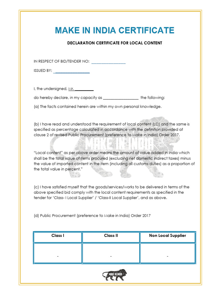 MAKE IN INDIA CERTIFICATE