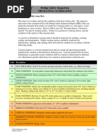 Prior to rating an existing bridge, the engineer must perform or review results of a recent detailed inspection. The engineer rating the bridge also needs a complete description of the bridge, as-built plans, any modifications since it was built, and its present condition. In lieu of plans, a detailed set of measurements and/or sketches from actual field measurements will be needed. By law, all bridges on the National Bridge Inventory are required to be inspected at least every two years. Inspection of bridges is done in conformance with AASHTOs The Manual for Bridge Evaluation, FHWAs Recording and Coding Guide for Structure Inventory and Appraisal of the Nations Bridges, DelDOTs Bridge Management Manual, and DelDOTs Element Data Collection Manual. Some structures require more detailed and different types of inspections to determine their actual condition and capacity. Bridges in poor structural condition require more frequent inspections. Bridges are not typically rated as a part of their routine biennial inspections. However, they may be rated as part of any and all inspections at the discretion of the Bridge Management Engineer. Load rating of bridges during inspections is usually prompted by discovery of obvious loss of