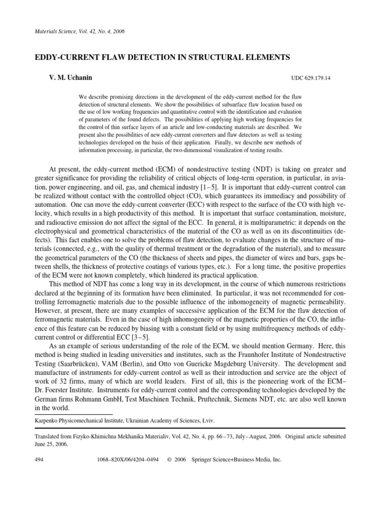 15. V. Uchanin, “Elevated frequencies in eddy currents–new possibilities of thin surface layer evaluation,” in: 15th World Conf. on