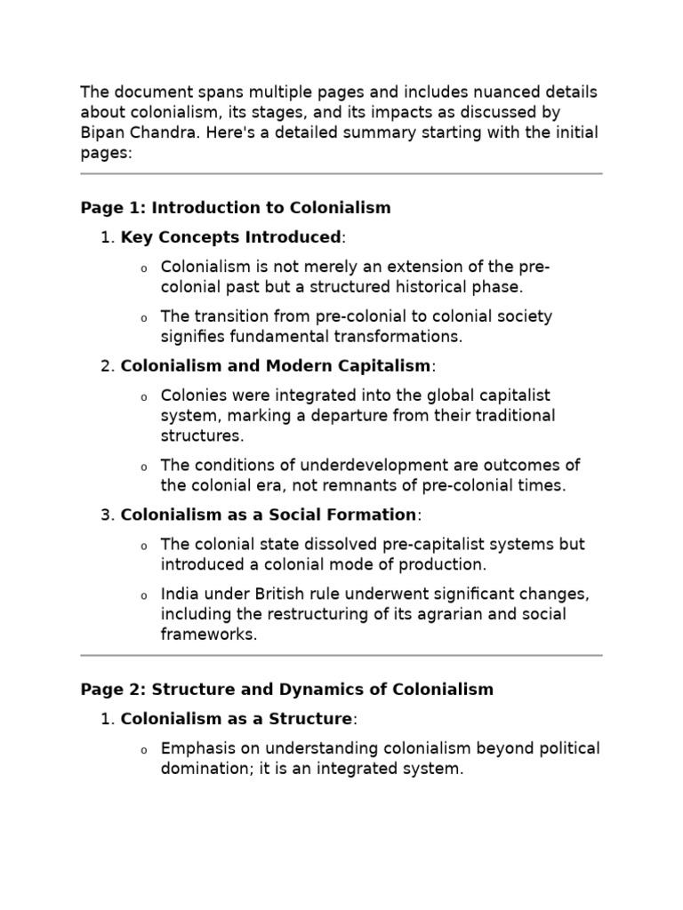 Bipan Chandra. Here's a detailed summary starting with the initial