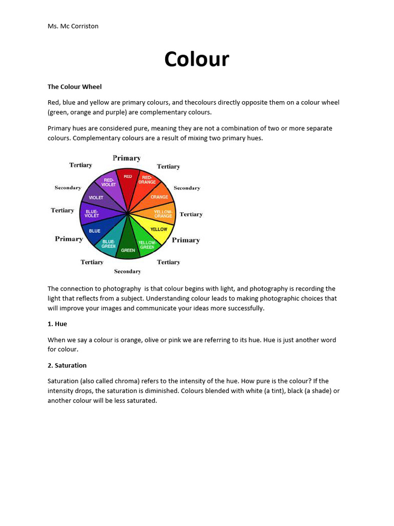 light that reflects from a subject. Understanding colour leads to making photographic choices that