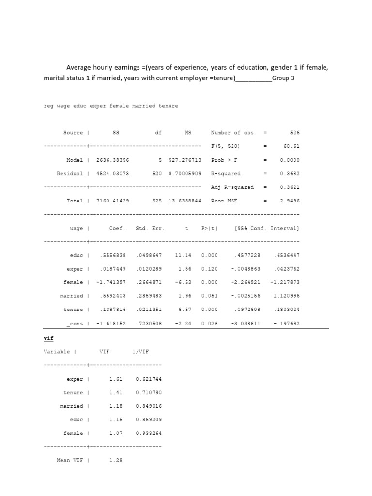 reg wage educ exper female married tenure