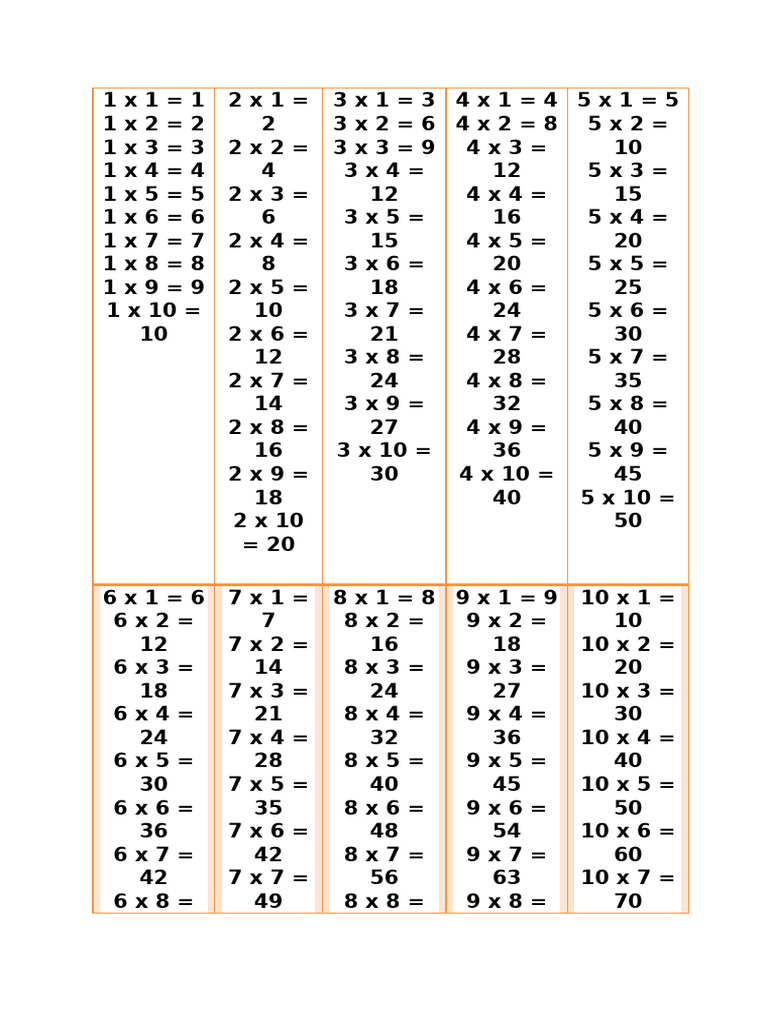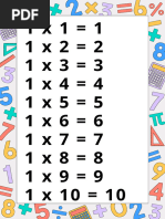 6x1=6 7x1 = 8x1=8 9x1=9 10 x 1 =