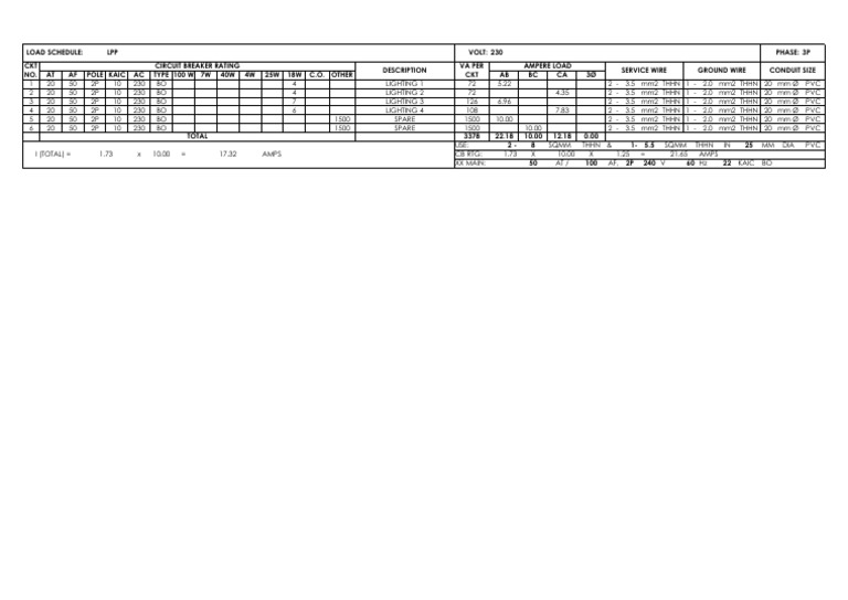 LOAD SCHEDULE: LPP VOLT: 230 PHASE: 3P