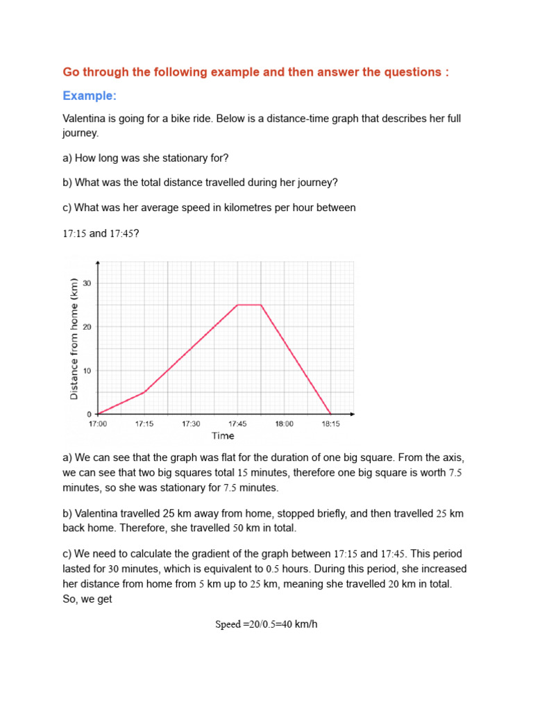 Valentina is going for a bike ride. Below is a distance-time graph that describes her full
