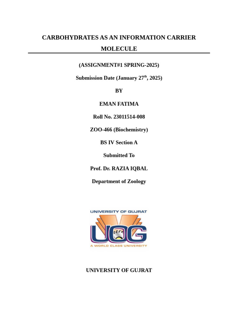 CARBOHYDRATE AS AN INFORMATION CARRIER MOLECULES