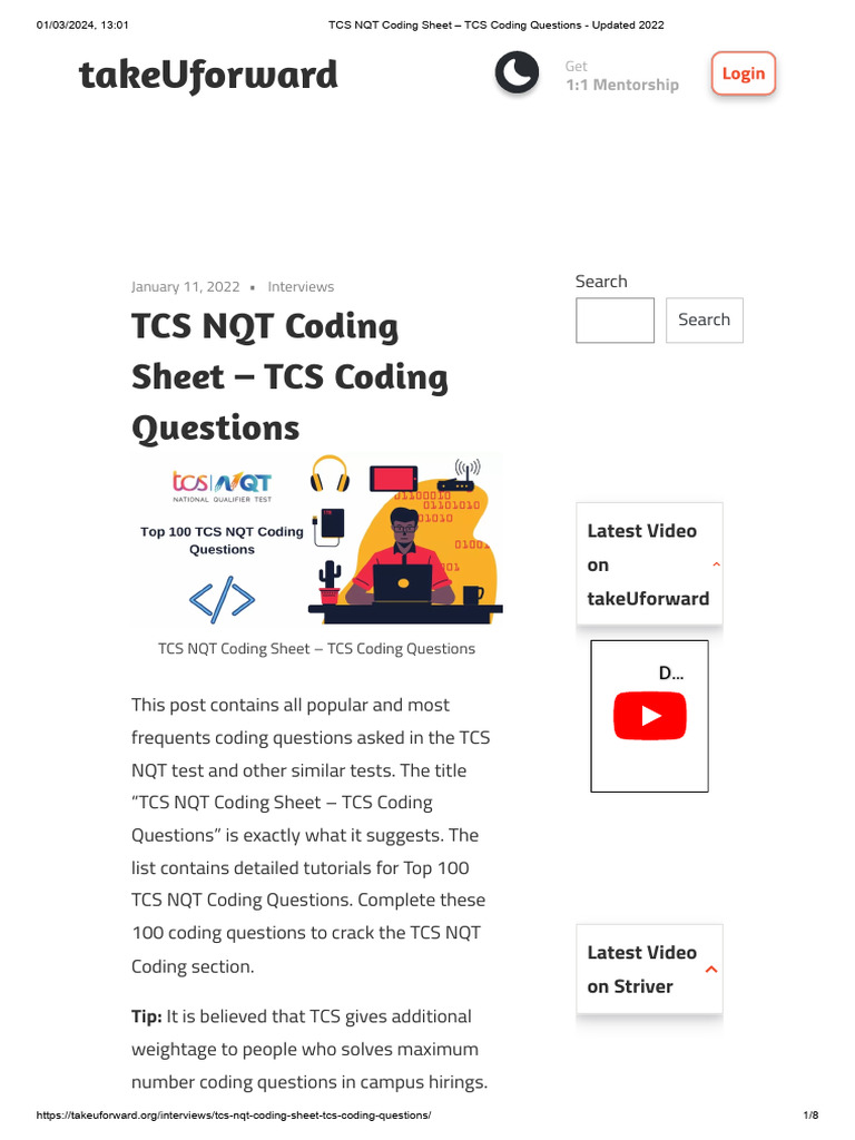 https://takeuforward.org/interviews/tcs-nqt-coding-sheet-tcs-coding-questions/ 1/8
