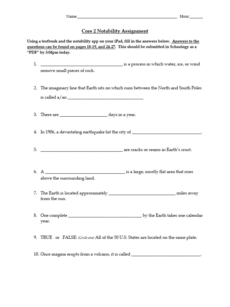 Using a textbook and the notability app on your iPad, fill in the answers below. Answers to the