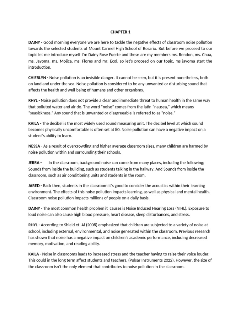 DAINY - Good morning everyone we are here to tackle the negative effects of classroom noise pollution