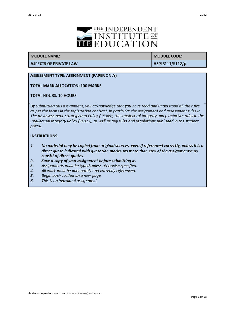Private Law Assignment Guidelines