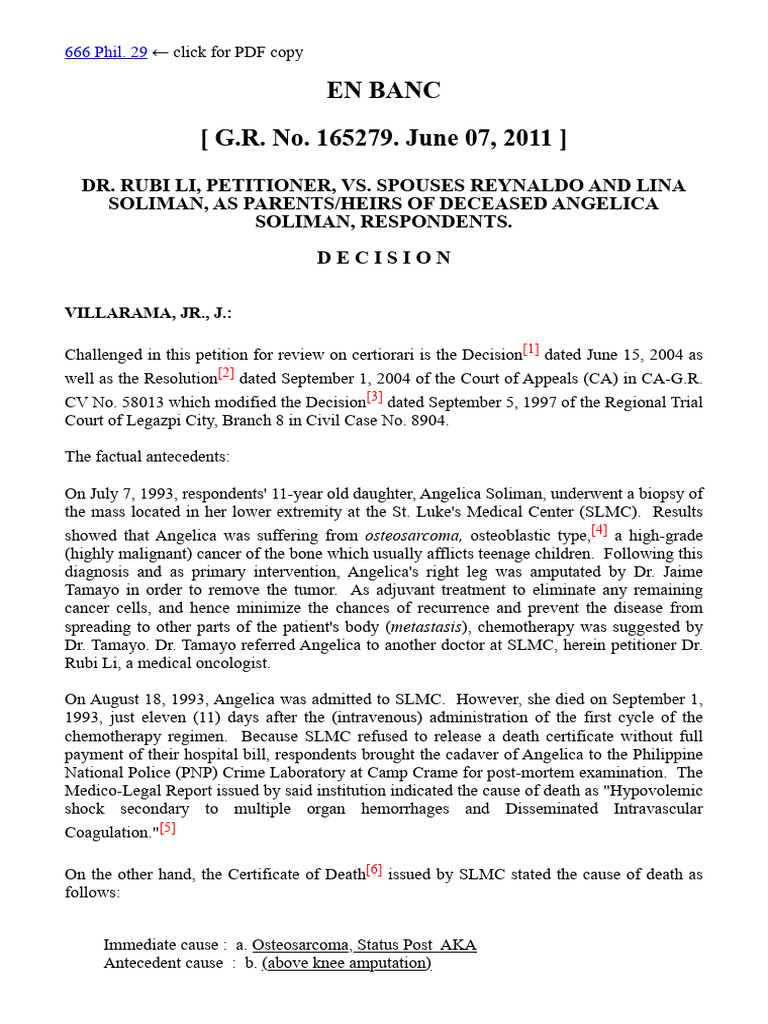 On July 7, 1993, respondents' 11-year old daughter, Angelica Soliman, underwent a biopsy of