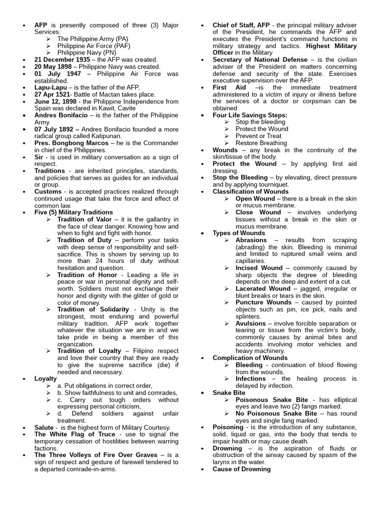 Lapu-Lapu – is the father of the AFP. First Aid –is the immediate treatment