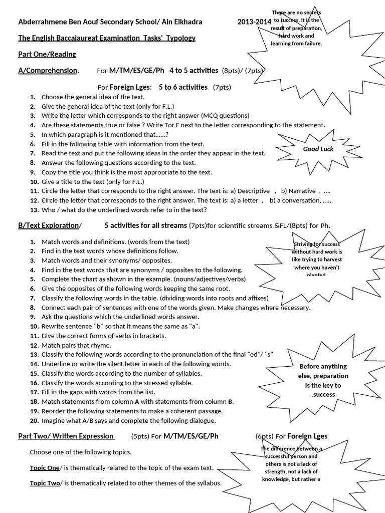 B/Text Exploration/ 5 activities for all streams (7pts)for scientific streams &FL/(8pts) for Ph.