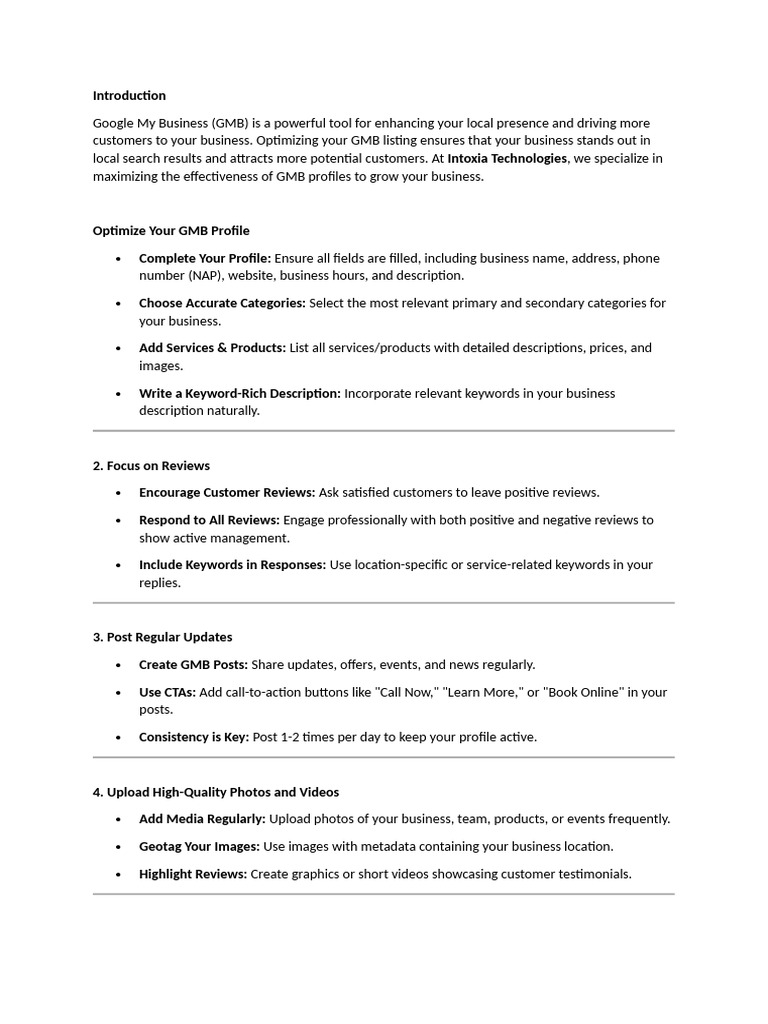 Expertise: Proven track record of optimizing GMB profiles for businesses across various