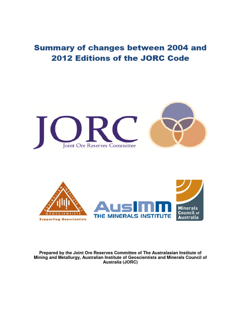 An appropriate citation is: JORC, 2013. Summary of changes between 2004 and 2012 Editions of
