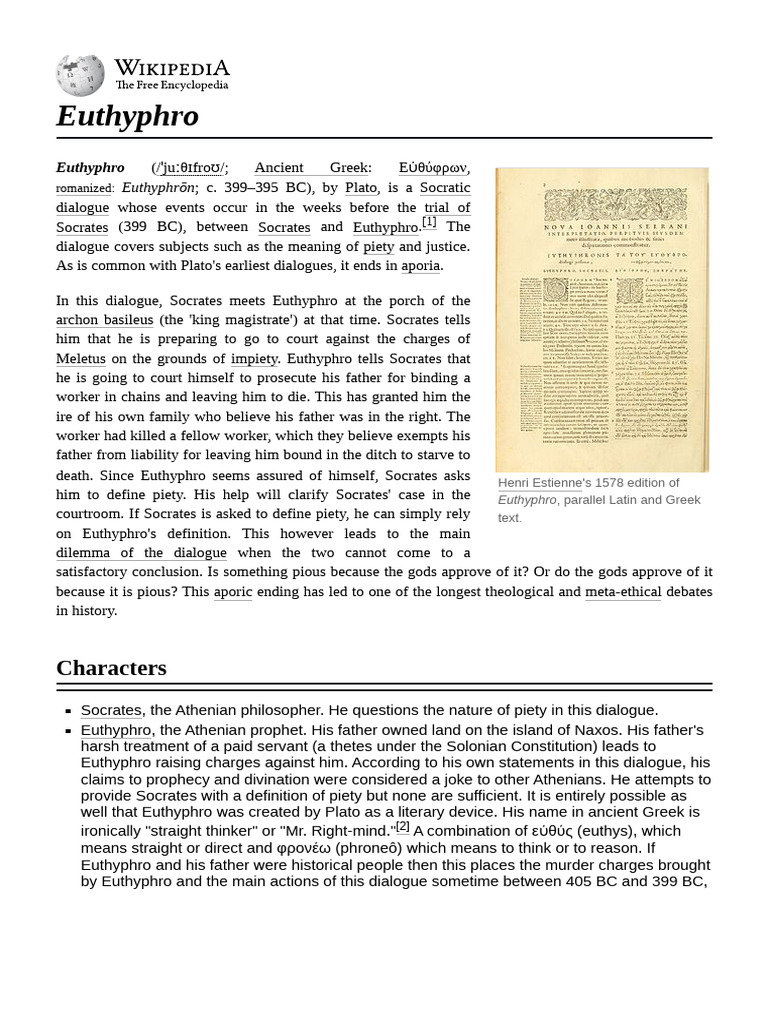 death. Since Euthyphro seems assured of himself, Socrates asks Henri Estienne's 1578 edition of