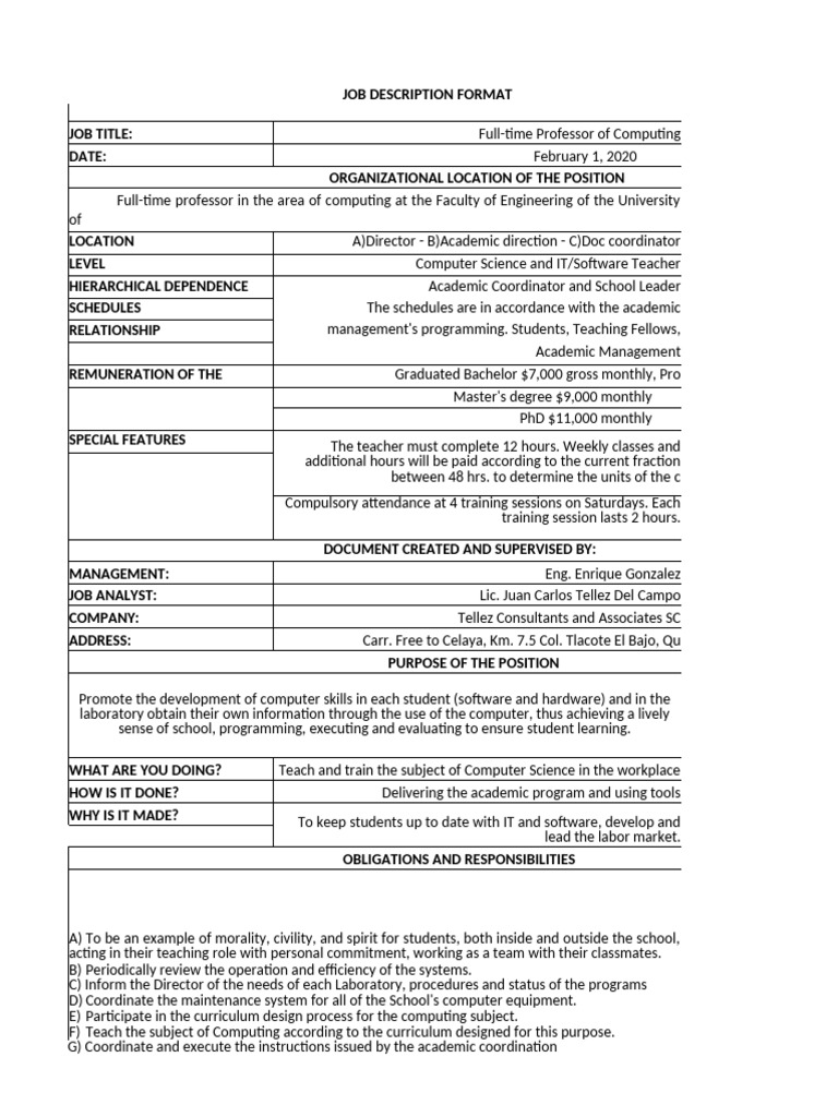 At least 3 years of experience as a computer teacher in technical schools and experience in