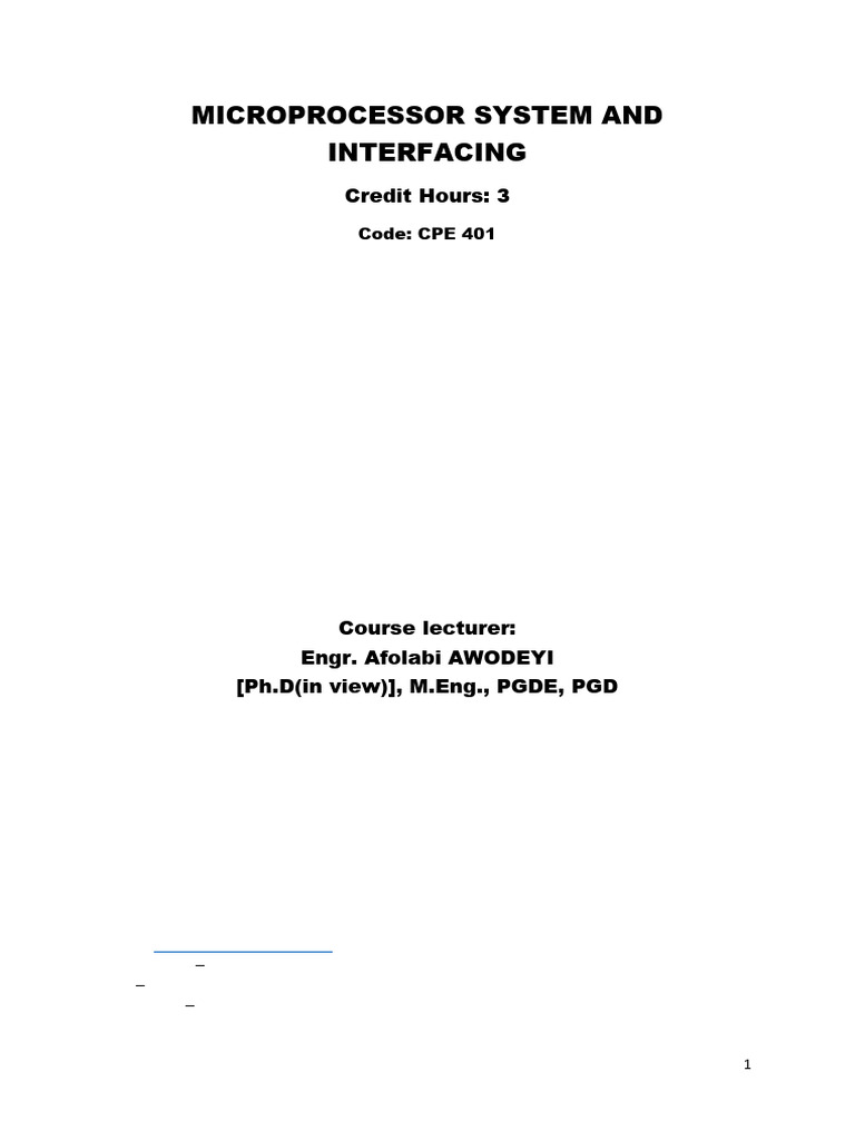 Upon successful completion of the Microprocessor Systems and Interfacing course, students