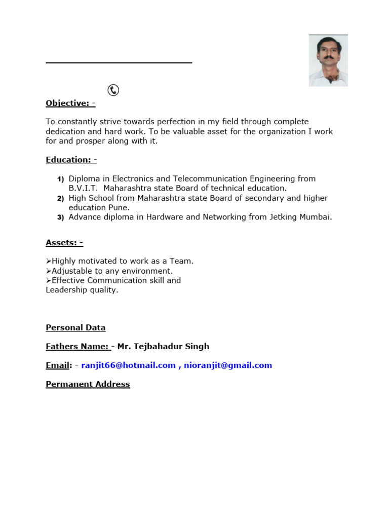 Fathers Name: - Mr. Tejbahadur Singh