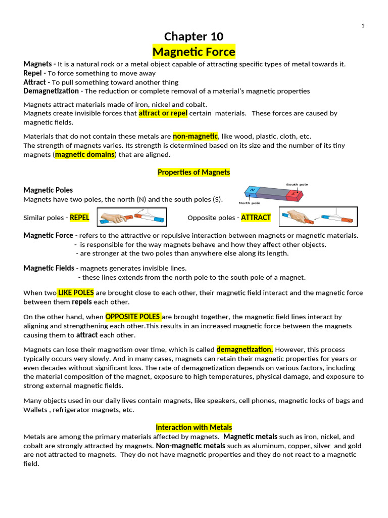 Magnetic Force - refers to the attractive or repulsive interaction between magnets or magnetic materials.