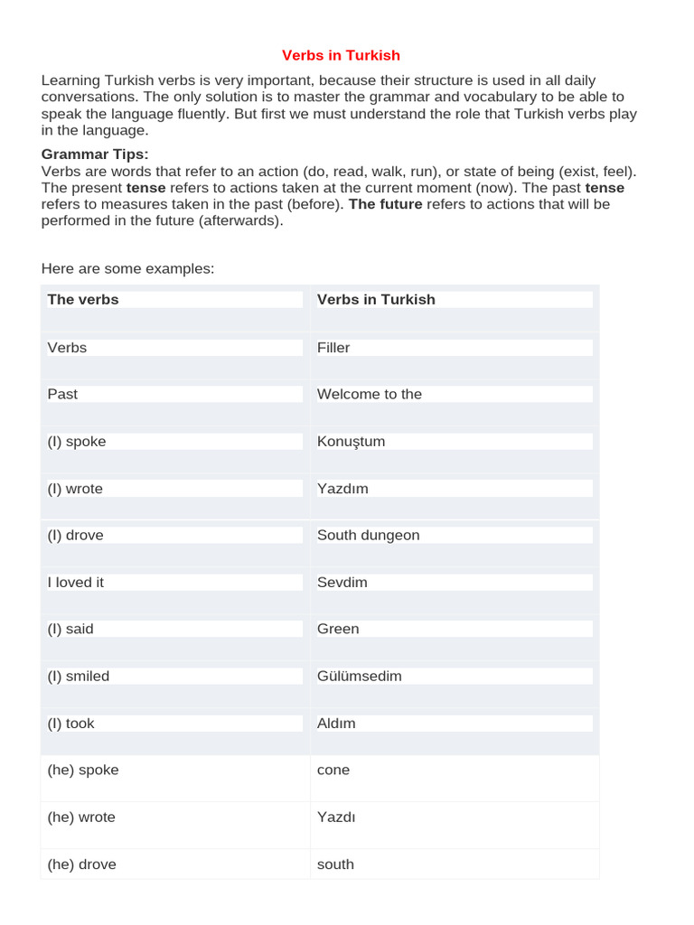 Learning Turkish verbs is very important, because their structure is used in all daily