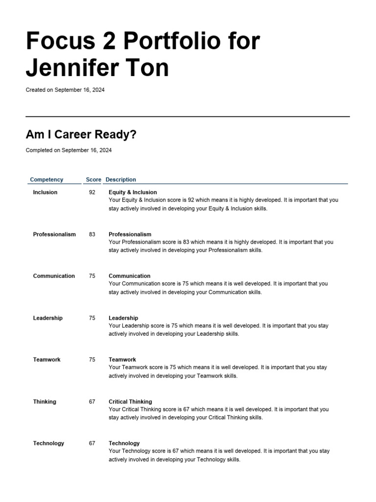 Your Career & Self-Development score is 50 which means it is moderately developed. It is