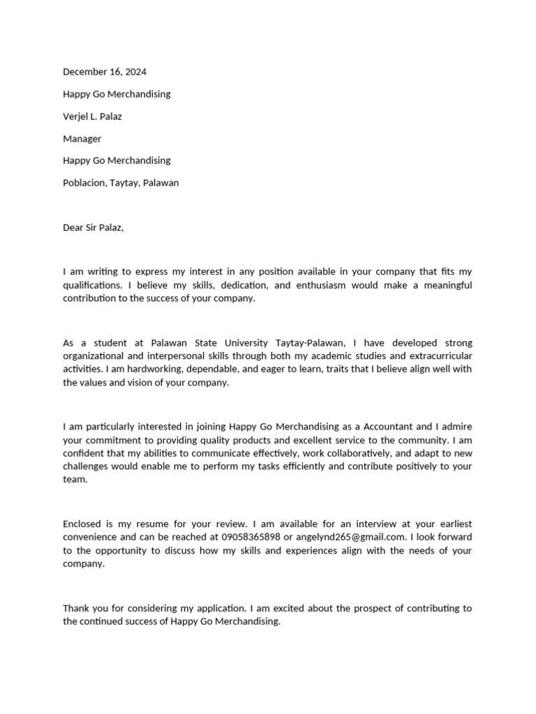 activities. I am hardworking, dependable, and eager to learn, traits that I believe align well with