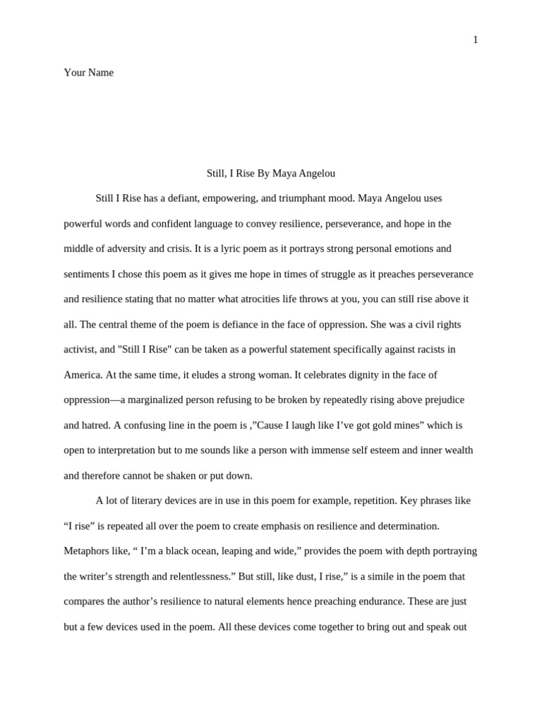 the writer’s strength and relentlessness.” But still, like dust, I rise,” is a simile in the poem that