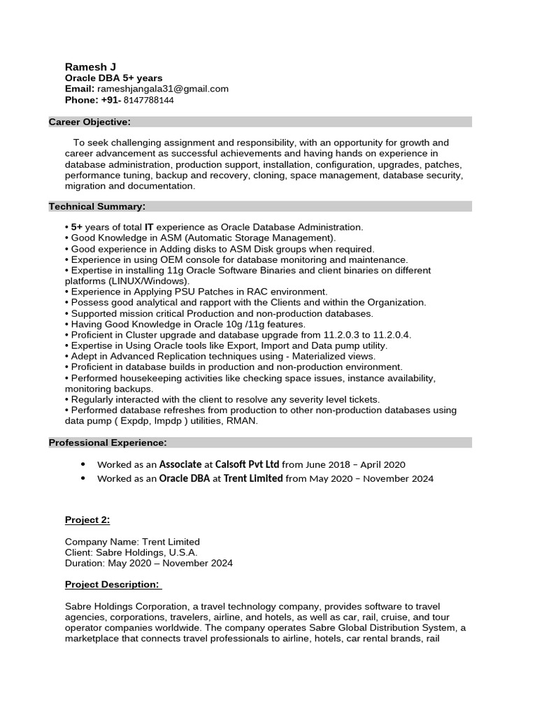 Worked as an Oracle DBA at Trent Limited from May 2020 – November 2024