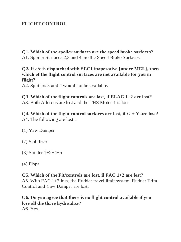 Q5. Which of the Flt/controls are lost, if FAC 1+2 are lost?