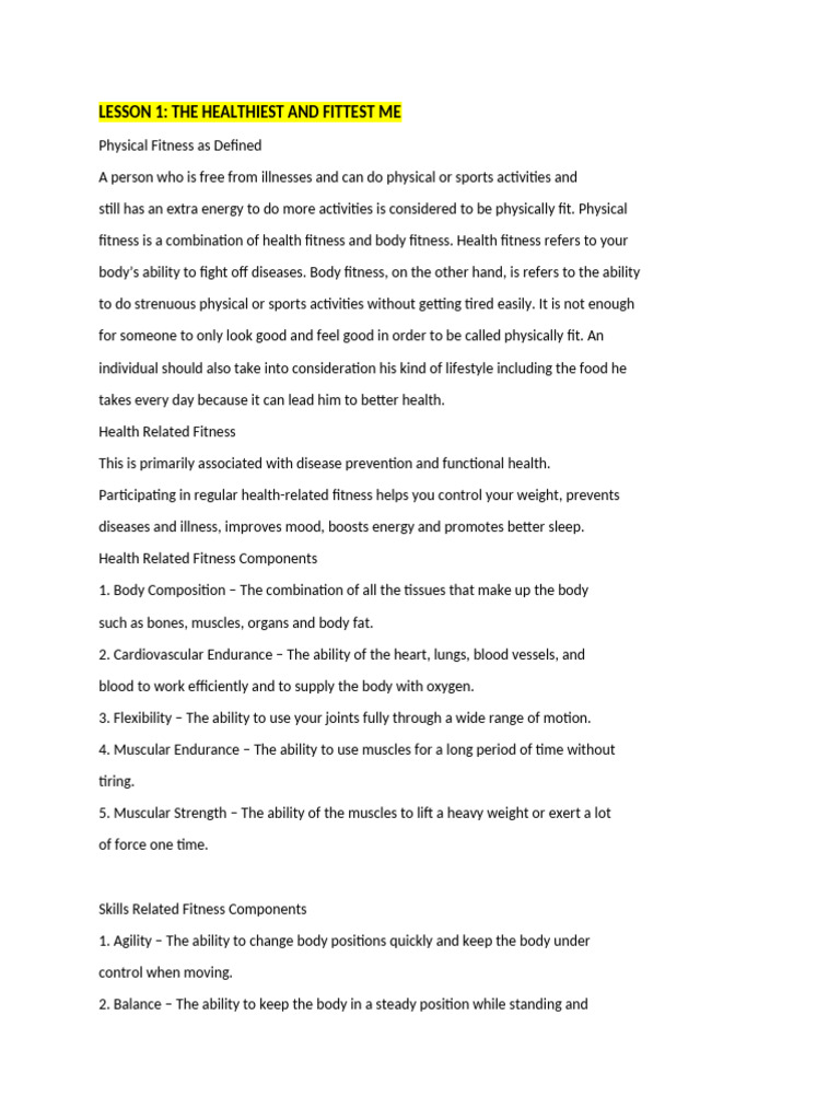 LESSON 1: THE HEALTHIEST AND FITTEST ME