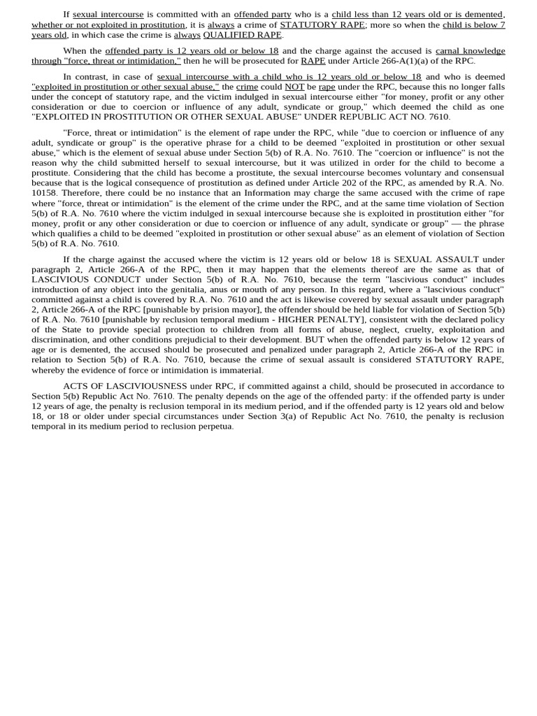 discrimination, and other conditions prejudicial to their development. BUT when the offended party is below 12 years of