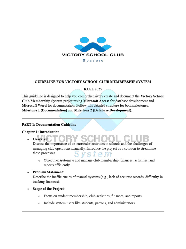 Victory School Club Membership System that meets all project requirements. Good luck with