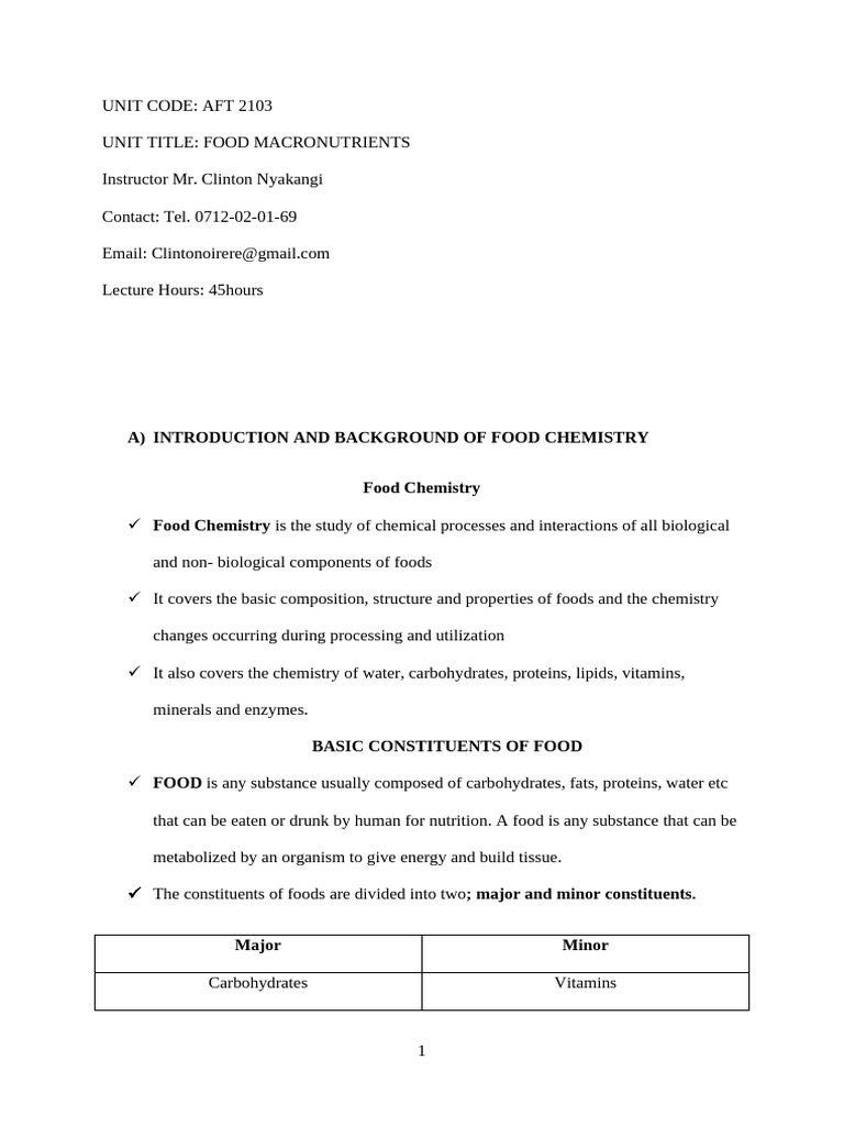 A) INTRODUCTION AND BACKGROUND OF FOOD CHEMISTRY