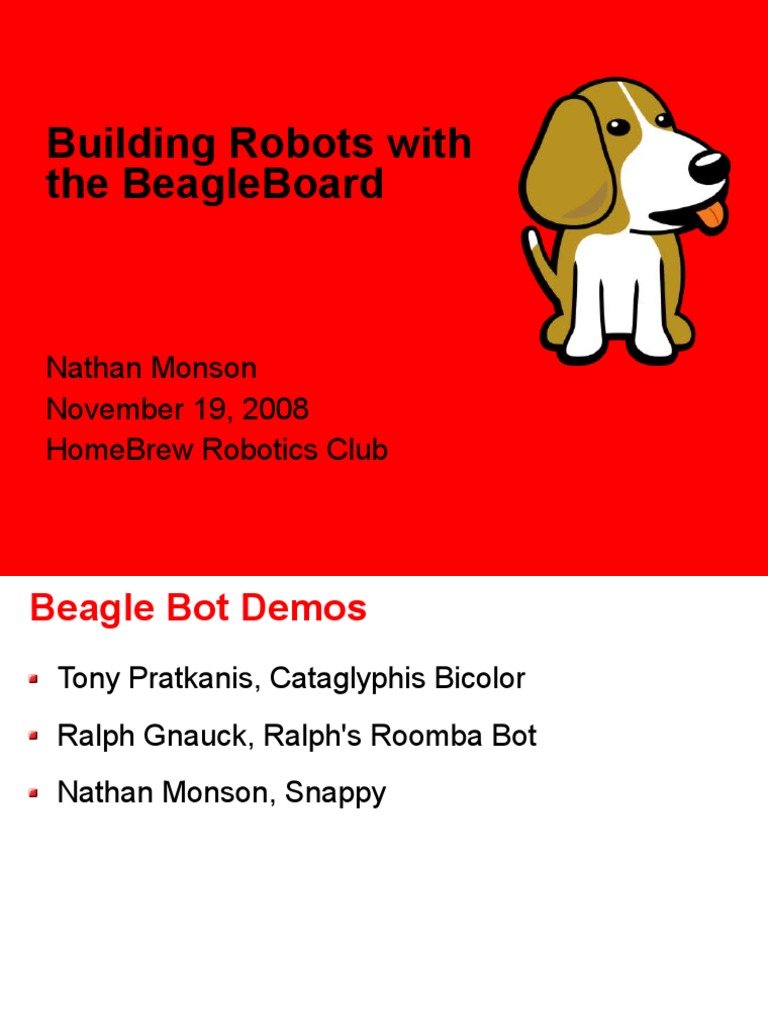 Building Robots With The BeagleBoard - HBRC, Nov 19, 2008