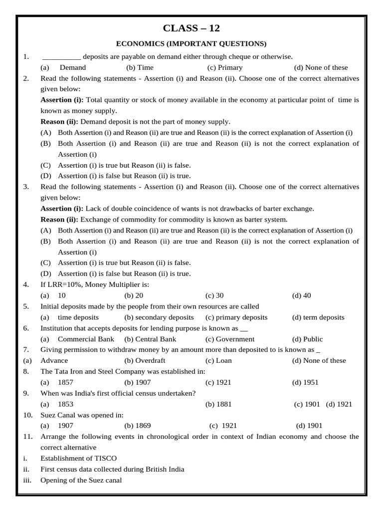 INDIAN ECONOMICS DEVELOPMENT IMPORTANT QUESTIONS FOR