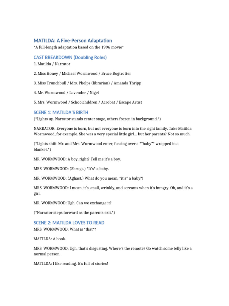 - Matilda’s Happy Ending (Miss Honey adopts Matilda, and they live happily ever after).