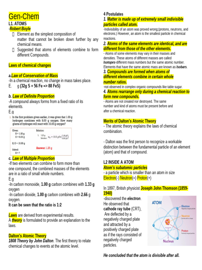 Gen-Chem 1. Matter is made up of extremely small indivisible