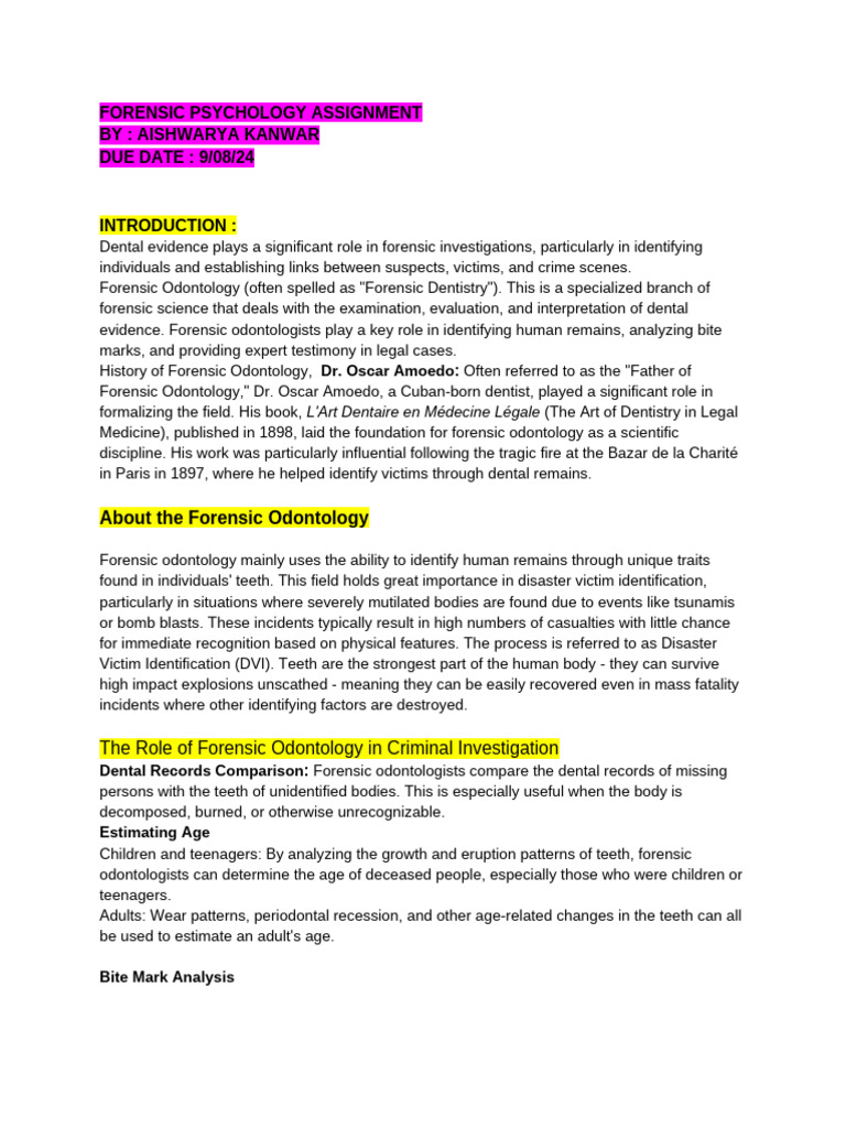Forensic odontology is a critical tool in forensic science, offering valuable insights for identifying