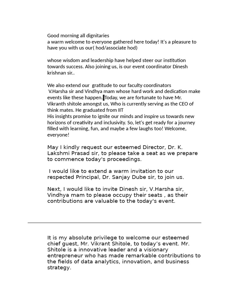 Dear esteemed guests, faculty, and friends, As we draw to a close on today's event, I would like to