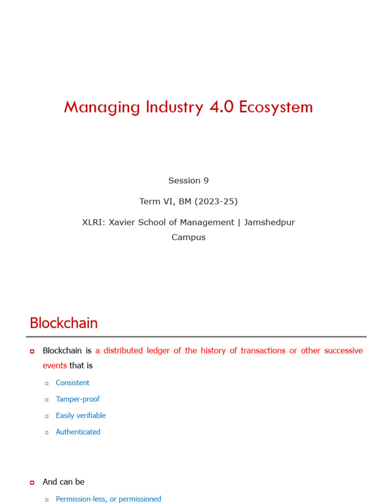Managing Industry 4.0 Ecosystem (2023-25) | Session 9 4