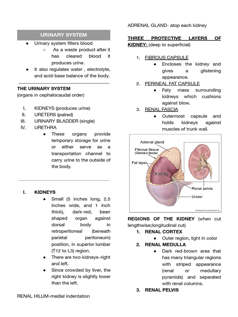 ● Urinary system filters blood KIDNEY: (deep to superficial)