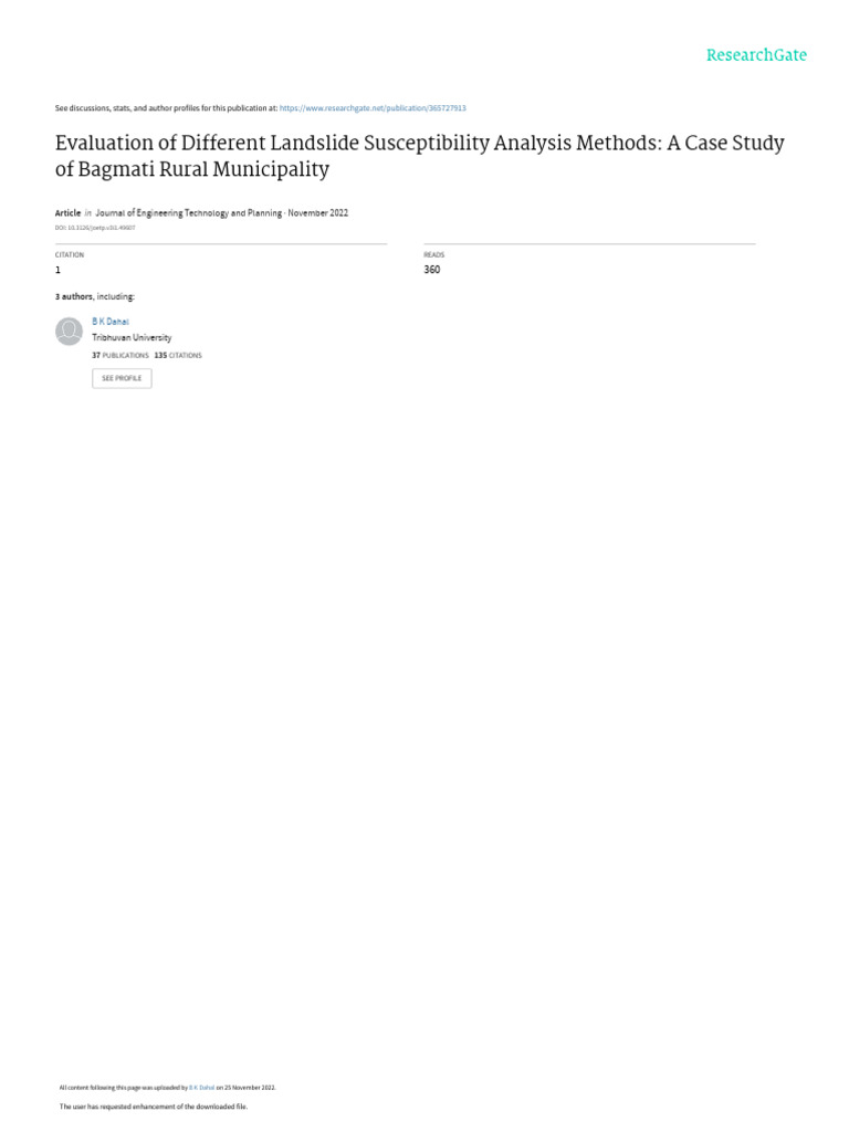 Dahal, B. K., & Dahal, R. K. (2013). Probablistic Hazard analysis.pdf. International Journal of Landslide and