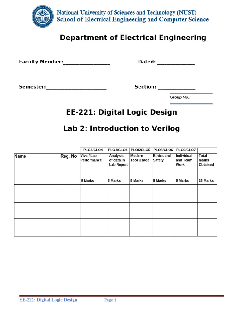 The students failing to complete Pre-lab will not be allowed to attend lab session.