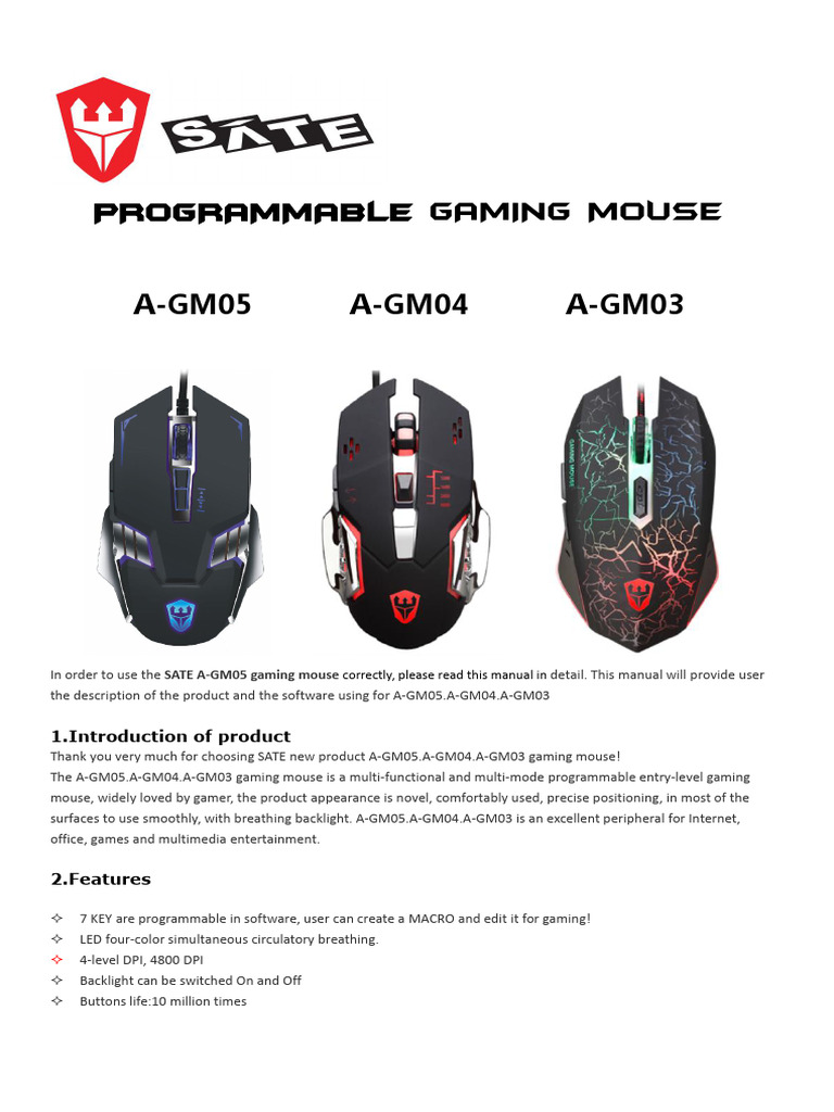 Thank you very much for choosing SATE new product A-GM05.A-GM04.A-GM03 gaming mouse!
