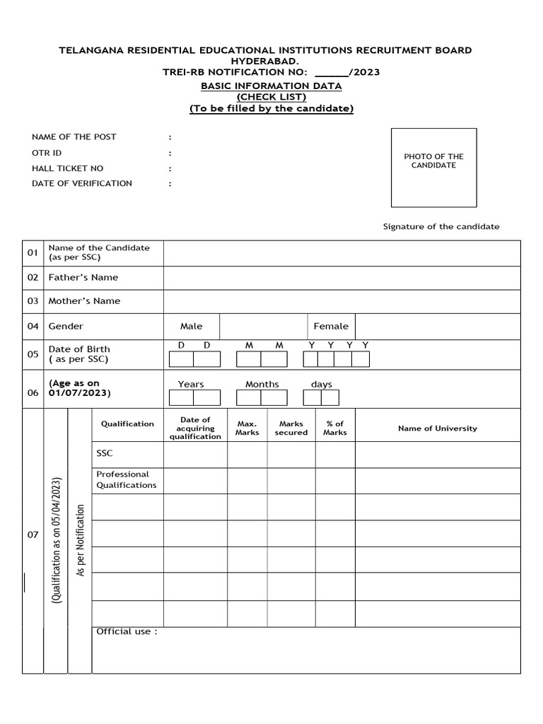 TELANGANA RESIDENTIAL EDUCATIONAL INSTITUTIONS RECRUITMENT BOARD