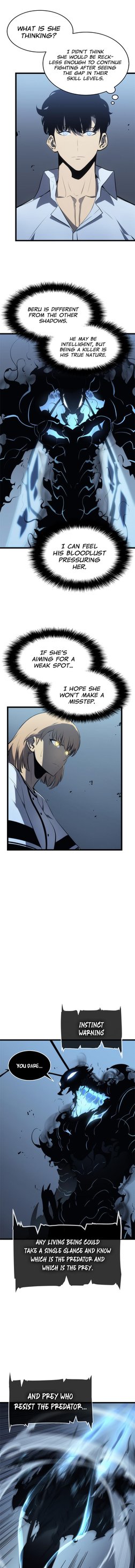 The document appears to be a dialogue from a narrative involving characters discussing battles and their motivations. It highlights the tension between hunters and shadows, particularly focusing on a character named Beru who is described as a killer. The conversation also touches on themes of loyalty, risk, and the nature of power in combat situations.