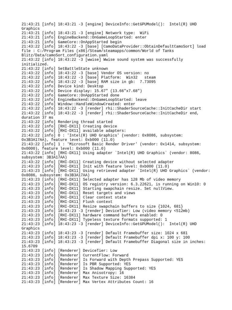 [Link] [info] [Link] -3 [engine] DeviceInfo::GetGPUModel(): Intel(R) UHD