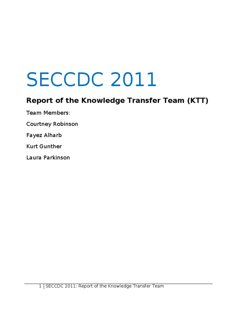 SECCDC 2011: Report of The Knowledge Transfer Team (KTT)