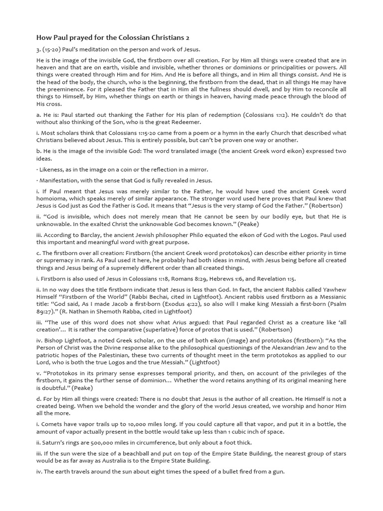 3. (15-20) Paul’s meditation on the person and work of Jesus.